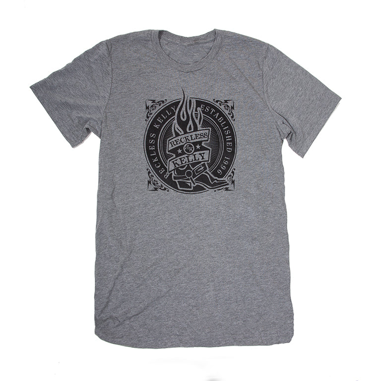 - Gray Triblend / Black Print of RK Burning Boot